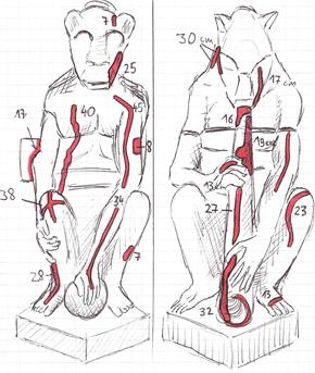 - Verpressen der Risssysteme an den Kunststeinturmfiguren